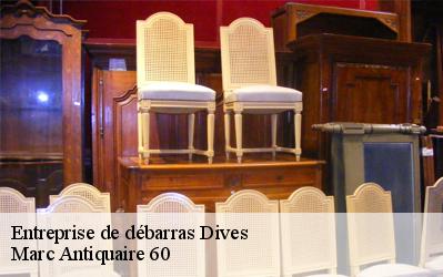Spécialisée dans les services de débarras, notre entreprise Marc Antiquaire 60 propose ses prestations à Dives et ses environs. Qu'il s'agisse d'un débarras d'appartement, de grenier et de cave, de garage ou de locaux professionnels, nous nous engageons à vous satisfaire pleinement. Nous mettons notre expertise au service des particuliers et des professionnels. Forts de notre expérience, nous savons exactement comment procéder. De plus, nous possédons une variété de véhicules adaptés pour le transport des objets à débarrasser. Sachez que nous sommes disponibles à toute heure, à tout moment.